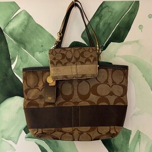 Coach Brown Signature Tote & Wallet Set (2 pieces) each has a hang tag.