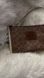 Elegant Coach wristlet featuring signature pattern. Includes secure zip closure and leather wrist strap. Perfect for essentials.