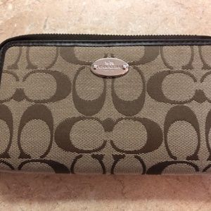 Coach Brown Signature Zip Around Large Wallet NWOT