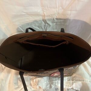 Stylish Coach tote with Star Wars patches. Features iconic characters and logos. Perfect for fans and daily use. Good used condition.