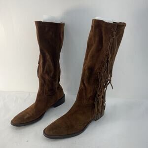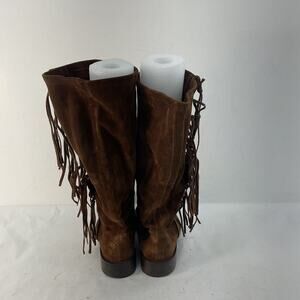 Coach Brown Suede Leather Tall Fringe Riding Boots Women's Size 7B Preowned