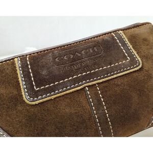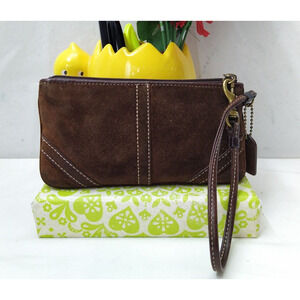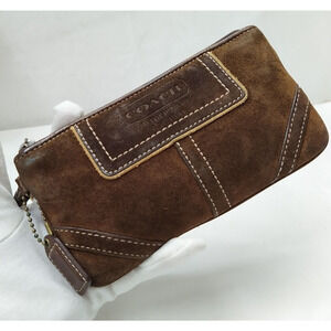 Coach Brown Suede Leather Trim Zipper Wristlet - Coin Wallet - Vintage