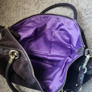 Coach Brown Suede slouchy hard bottom shoulder bag with top handles