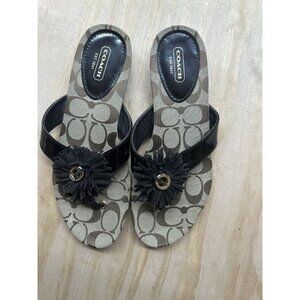 Coach Brown & Tan Suki Logo Print Jewel Trim Thong Sandal Shoes 8 Flip Flop NEW