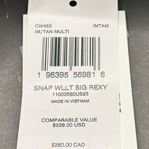 Coach Wallet! Beautiful Brown wallet with vibrant Dino astronaut graphic. Features bold COACH logo.
