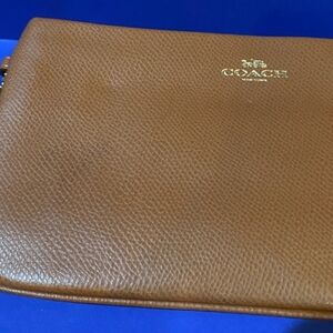 Elegant brown leather wristlet. Features Coach logo. Perfect for any occasion. only used twice.