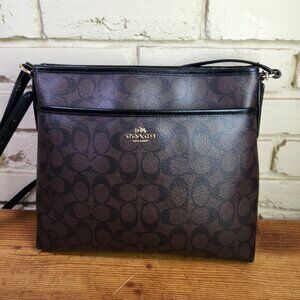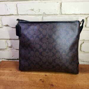 Stylish Coach crossbody bag. Features signature pattern. Adjustable strap for comfort. Perfect for everyday use.