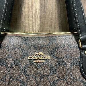 Coach Brown and Black Signature Tote Purse Bag Zip up