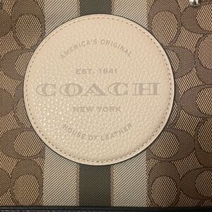 Stylish Coach crossbody with signature pattern. Brown and blue tones. Perfect for daily use. Small mark on back of bag.