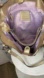 This is a beautiful coach bag with metallic leather straps and silver hardware. This is a large shoulder bag measures approximately 18 inches wide by 11 inches tall and about 7 inches deep. This is preowned however I don’t see any callouts on this bag. It’s in great condition. There’s no pealing or fraying on the straps. I don’t see any stains inside or out. The interior is like a lilac purple very pretty. Has two slip pockets on one side, a zipper pocket on the other plus a large zipper pocket in the middle so basically has three large compartments. It’s a snap closure top.