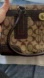 Stylish Coach shoulder bag with signature pattern. Features brown and cream design. Perfect for everyday use.