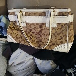 Elevate your style with the Coach Signature Tote. This elegant bag features a classic brown and cream design, perfect for any occasion. Crafted with premium materials, it offers both style and functionality.