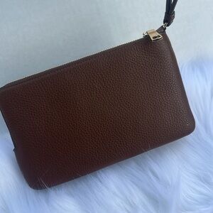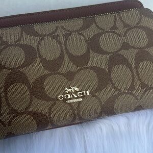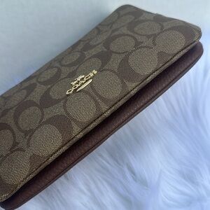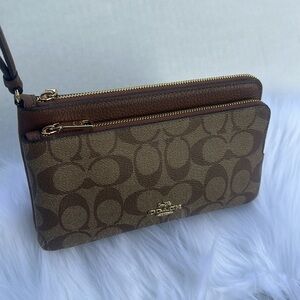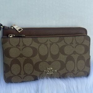 Stylish Coach wristlet with signature design. Features brown and tan colors. Perfect for everyday use. Brand new
