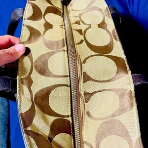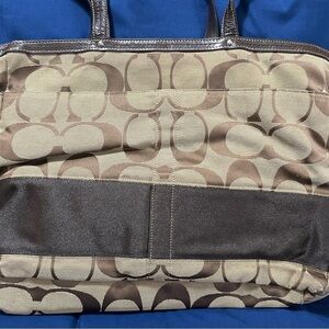 Stylish Coach tote with signature pattern. Features dual handles and spacious interior. Perfect for everyday use.
