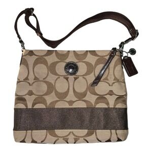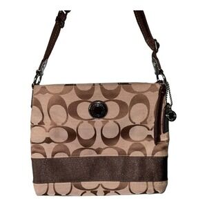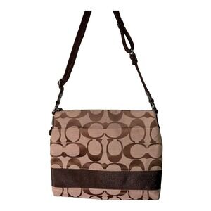 Coach Brown/Beige Signature File Canvas Crossbody Bag EUC