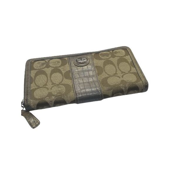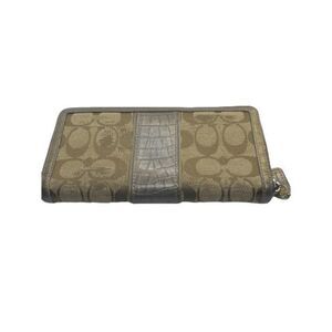 Coach Brown Canvas & Leather Long Zip Around Wallet **WORN**