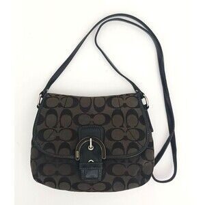Coach Buckle Flap Front Blk Logo Jacquard Crossbody Patent Strap/Trim 9X6.5