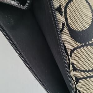 Coach Buckle Signature Clutch Wallet Large Logo Canvas Leather Black Trifold