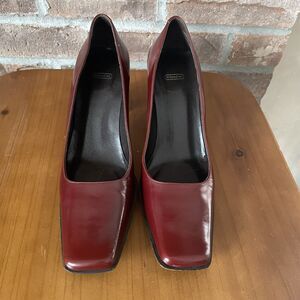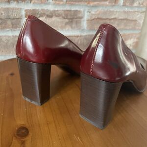 Coach Burgundy Leather Heels Size 6B Red Made in Italy Square Toe Block Heel
