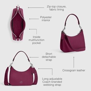It's All in the Details: Credit card slot, Inside multifunction pocket, Zip-top closure, fabric lining, Detachable handle with 8" drop, Detachable strap with 21 3/4" drop. Interchangeable webbing strap with 25" drop. 8 3/4"L x 7 1/4"H x 2 1/2"W