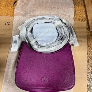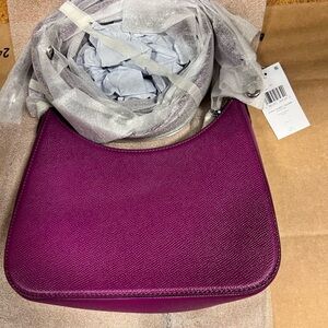 Crossgrain Leather: This sleek, deep plum handbag is crafted of durable, scratch-resistant crossgrain leather finished with our Signature hardware