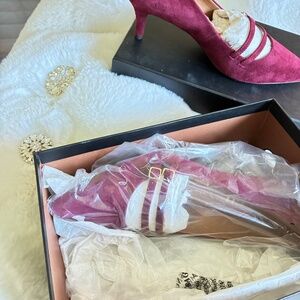 Step into sophistication with these stunning Coach heels in rich burgundy suede. Designed with graceful pointed toes, double buckle straps, and a sleek mid-heel, they’re perfect for both a chic office look, wedding, or an evening out.