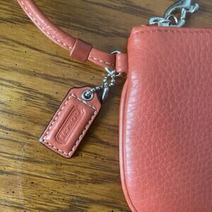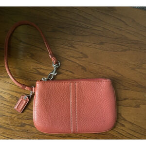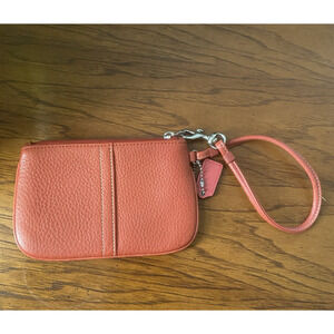Coach Burnt Orange Pebbled Leather Wristlet Pouch F42389