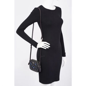 Coach Butterfly Applique Black Blue Butterfly Leather with cards, coins, id case