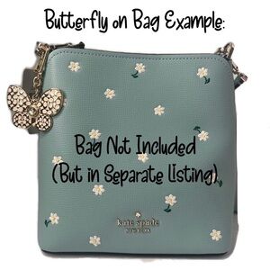 This is a rare and gorgeous white and gold butterfly keychain. This is a vintage piece! There are some small surface scratching and general wear due to age to the metal (please view all the pictures). I included a picture of the keychain on one of my Kate Spade bags (not included), but this piece looks gorgeous as a bag charm.