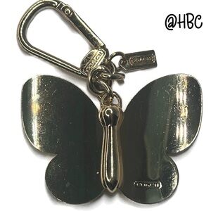 Coach Butterfly White and Gold Enamel Metal Keychain Fob Charm Rare.
