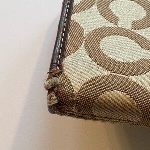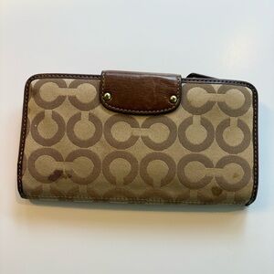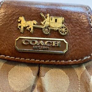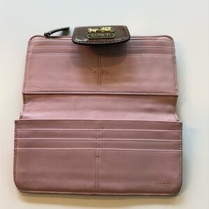 Coach logo wallet, with pink leather interior. Has some flaws so selling as is. See all photos.