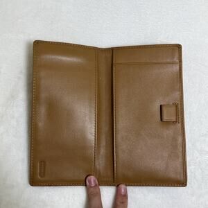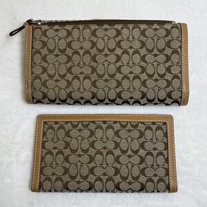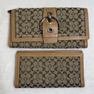 Coach C Signature Brown & Khaki Canvas & Leather Bifold Wallet w/Buckle & Chkbk