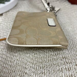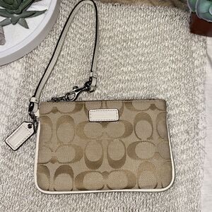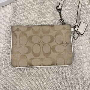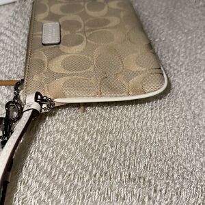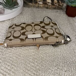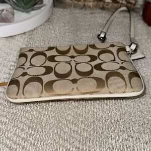 Coach C Signature Logo Light Brown Ivory Canvas Leather Combo Wristlet Wallet