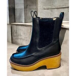 Coach C0152 Delaney Chelsea Leather/Faux Fur Pull On Boots Size 8.5B