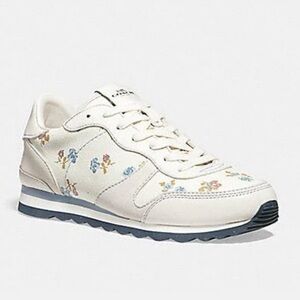 Coach C142 runner rose feminine athletic sneakers with romantic floral detail. Size 11. In very good pre owned condition with a few sings of wear as pictured.