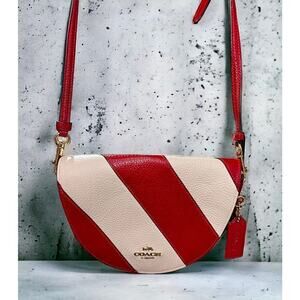 This Coach C1429 Ellen Pebble Leather Crossbody Bag from 2020 is such a cute little crossbody bag! Featuring refined pebble leather in Chalk/Ruby stripes with gold hardware, this crossbody is perfect when you want to travel light, just the right size for your necessities and adds the right amount of color to any outfit. The strap is removable, so you can change up the look of the bag by using different straps. If you love Coach style and quality, you need this bag in your collection!
