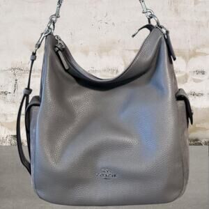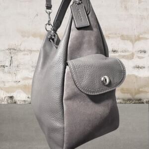 Coach C1522 Pennie Hobo Heather Gray Suede & Leather Convertible Shoulder Bag