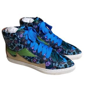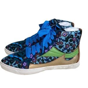 Coach Style C203 Q8805 Floral Flower print with gold and green strips. Blue Laces