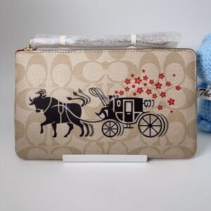 Lunar New Year Large Corner Zip Wristlet In Signature Canvas With Ox And Carriage