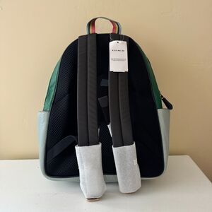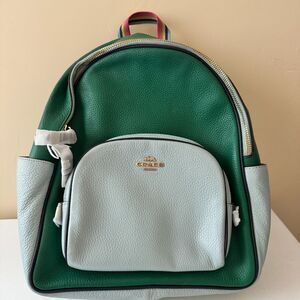 Coach (C2797) Court Light Teal Multi Colorblock Medium Pebbled Leather Backpack