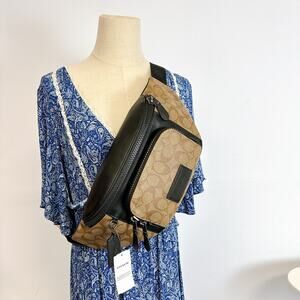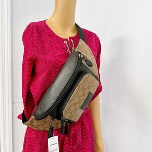 Coach C3765 Track Belt Bag In Signature Canvas IN Khaki Black