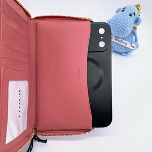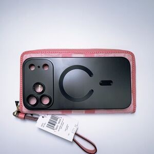 Coach C9073 Dempsey Large Phone Wallet Signature Jacquard Stripe And Patch Taffy Pink