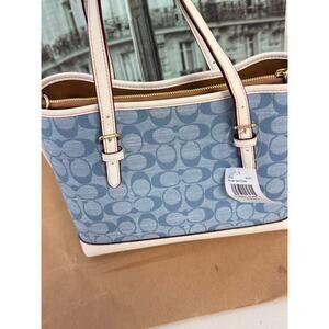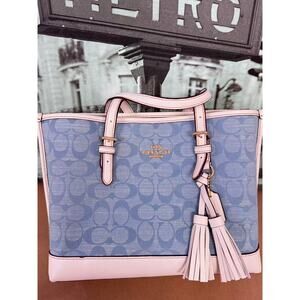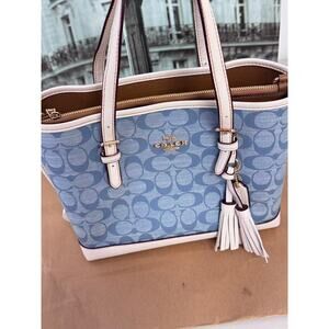 Coach CA142 Mollie Tote 25 In Signature Chambray &Leather Light Denim/Chalk