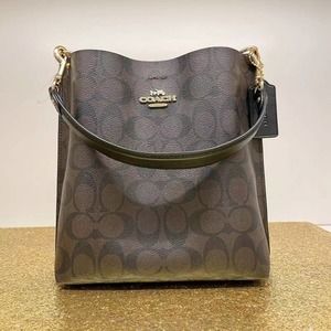 Coach CA582 Mollie Bucket Bag 22 In Signature Canvas In Gold/Brown Black