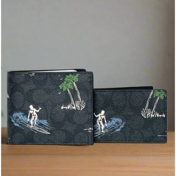 TAGS: Coach, Men’s Wallet, ID Wallet, Bifold Wallet, Signature Canvas, Charcoal Wallet, 3-in-1 Insert, Compact Wallet, Everyday Wallet, Travel Wallet, Gift for Him, Designer Wallet, Surf Print, Casual Wallet, Leather Trim
