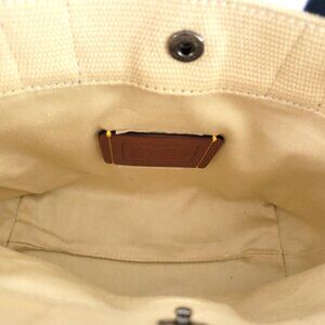 Natural woven canvas w/ embroidered "COACH 1941" in Navy/Midnight and Tan smooth leather