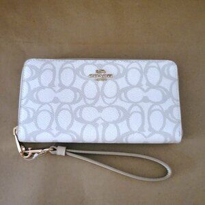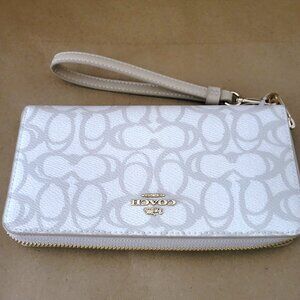 Coach CBO02 Long Zip Around Wallet Sketch Signature Canvas Wristlet Ivory
