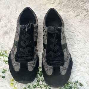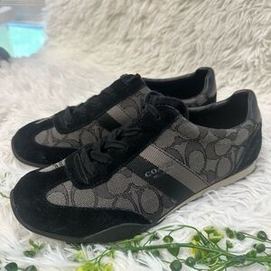 Coach CC Monogram Suede Canvas Black Gray Lace Up Casual Kelson Sneakers 8B