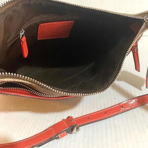 Coach CC signature print canvas crossbody handbag with silver tone hardware main compartment 3 pockets at interior wall 1 zip closure & zip closure at top zip pocket closure at front logo at front leather strap & trim hight 11” width 12” depth 3” strap drop 23” The dimensions are based on approximately measurements before placing an order please check take a moment to view all photos using feature for a closer look