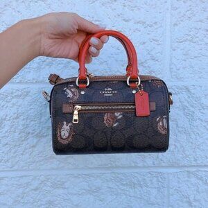 Coach CC430 Mini Rowan Crossbody In Signature Canvas In Gold/Brown Black Multi